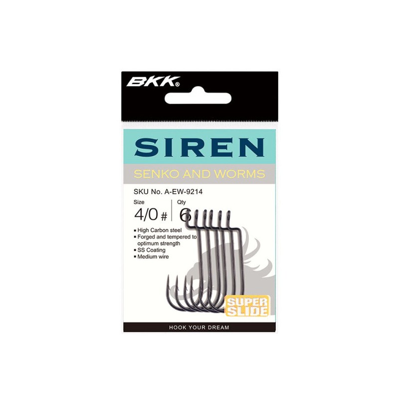 BKK Siren este un cârlig pentru momeli moi (grub) dezvoltat special pentru montura Texas. Permite utilizarea unei game foarte largi de momeli tip vierme, cum ar fi momeli vierme cu coadă ondulată, momeli de vierme cu coadă dreaptă și momeli stick.Designul de profil cu ecartament mediu îl face potrivit pentru linii de greutate medie. Îndoirea rotundă asigură un spațiu adecvat pentru cârlig, care permite o agățare adecvată chiar și atunci când utilizați momeli de vierme cu profil mai voluminos. Combinația de acoperire Super Slide și vârful de cârlig super ascuțit asigură o performanță excelentă de penetrare și o penetrare netedă prin scăderea rezistenței la perforare. Practic captura se agata fara sa si dea seama iar efortul de penetrare din partea pescarului nu este nevoie sa fie prompt.