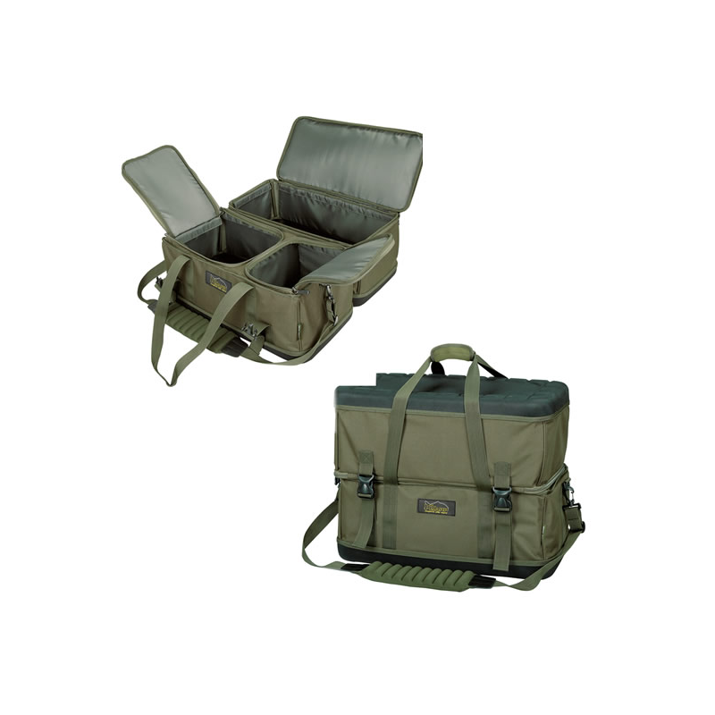 Geanta de dimensiune generoasa cu partea inferioara din material EVA tare ,excelenta pt transportul accesoriilor si mulinetelor .Functionala si practica nu ocupa loc mult la transport.
