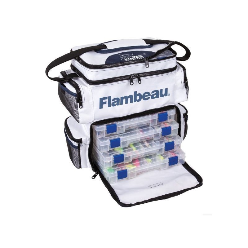 Dedicata pasionatilor pescuitului la rapitori, geanta Flambeau Front Load Soft Side dispune de 5 cutii pentru accesorii si 1 cutie pentru spinnerbaits. Este foarte bine compartimentata si cu multiple buzunare, fiind ideala pentru sesiunile lungi de pescuit. Cutiile dispun de pereti despartitori din material Zerust (patentat Flambeau), polymer care permite eliberarea unor vapori inofensivi pentru a crea un strat de protectie in jurul nalucilor si accesoriilor metalice si a le proteja impotriva coroziunii.