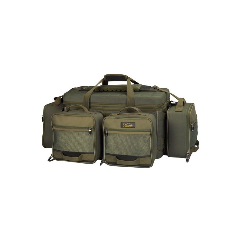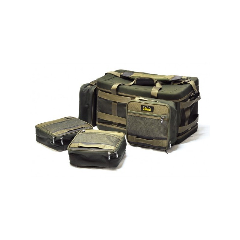 Geanta destinata pescarilor de crap angrenati in sesiuni lungi sau concursuri de pescuit. Nu doar dimensiunile, ci si caracteristicile o evidentiaza in fata altor modele Carryall disponibile pe piata. Vorbim in primul rand de modularitatea data de cele 4 buzunare laterale aplicate la geanta prin benzi Velcro si care pot fi inlaturate complet in functie de necesitati.