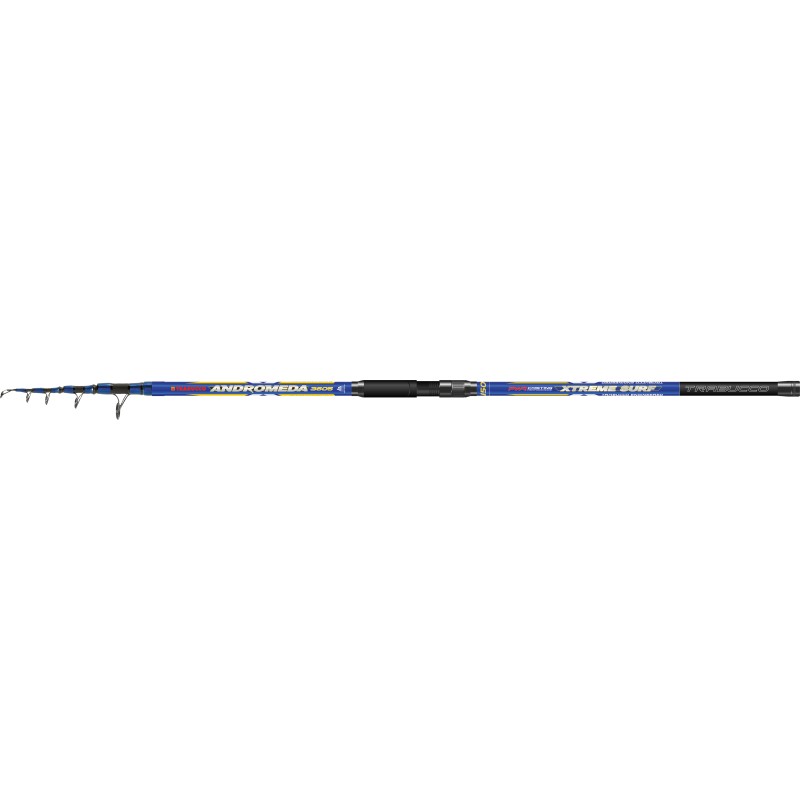 Lanseta telescopica cu actiune parabolica, ideala pentru pescuitul de plaja sau stafilopzi. Toate tronsoanele vin ranforsate cu banda de carbon la capete, varful extrem de sensibil este fabricat din carbon solid si este vopsit in culori super vizibile.