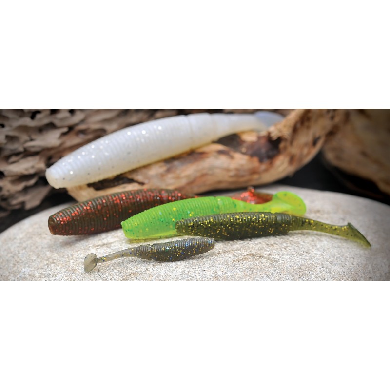 Un shad moale aromat si colorat, propus intr-o familie vasta de dimensiuni si culori, care este acum extins cu cateva solutii interesante. Se caracterizeaza prin tonul dublu care ii confera o putere deosebit de atractiva impotriva tuturor pradatorilor, atat in apa dulce, cat si sarata. Folosirea acestor naluci variaza de la jiguri normale pana la diferite stiluri, cum ar fi Drop Shot si Texas rig. Corpul este pregatit sa accepte carligul si sa-l mentina pe loc cu ajutorul designului perfect. Coada tinde sa deplaseze o cantitate semnificativa de apa, atragand atentia pradatorilor de la o distanta apreciabila.