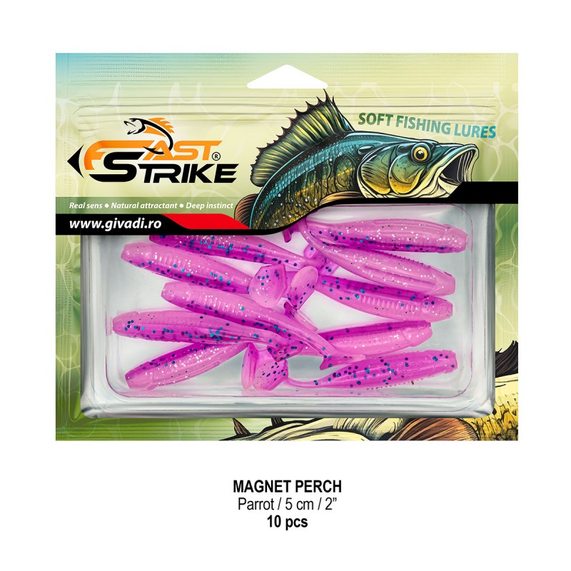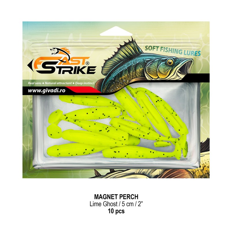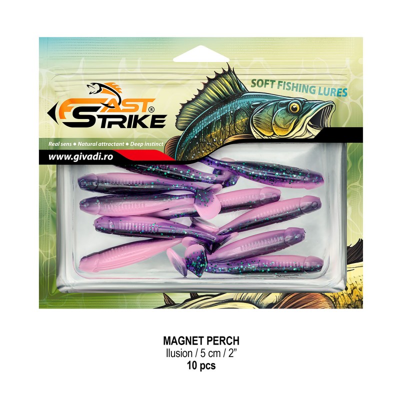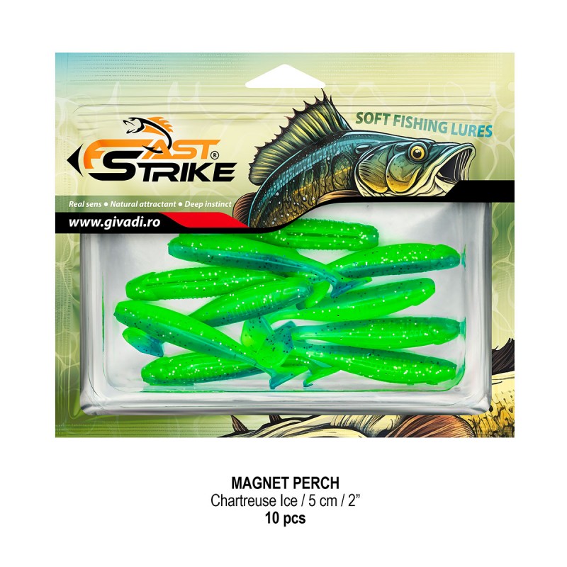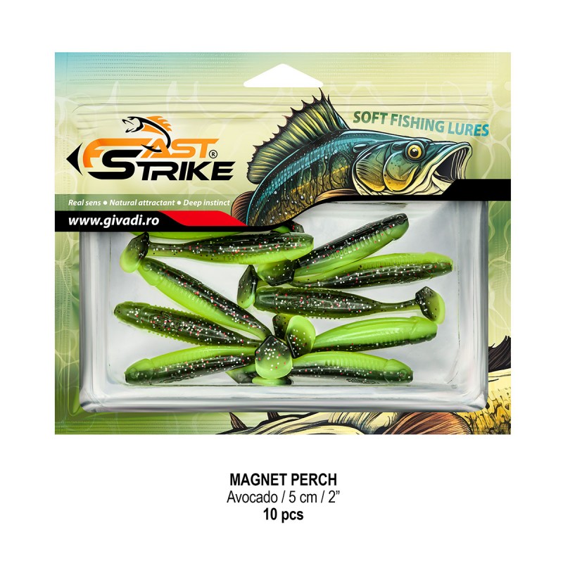 Magnet perch soft este cu adevarat un magnet pentru pestii rapitori, cu o actiune incredibila pentru o momeala atat de mica, datorita circumferintei supradimensionate a banutului cozii, care este caracterizata printr-o miscare realista producand vibratii din cele mai agresive. Este una din cele mai bine pastrate secrete de catre pescari de salau si biban, fiind utilizate in zilele cand rapitorul nu este activ.