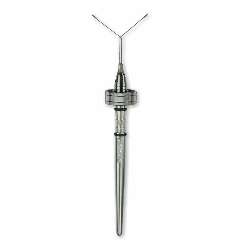 Instrument pentru dubbing de calitate superioar, realizat din otel inoxidabil, cu rulment pe bile in interior, care permite o rotatie rapida si lina in lucru.Capul sau oscilant permite o miscare libera de 180 de grade cu blocul din pozitia centrala. Pozitionarea capului la 90 de grade impiedica derularea dublarii care poate fi infasurata direct pe carlig fara a utiliza clesti.