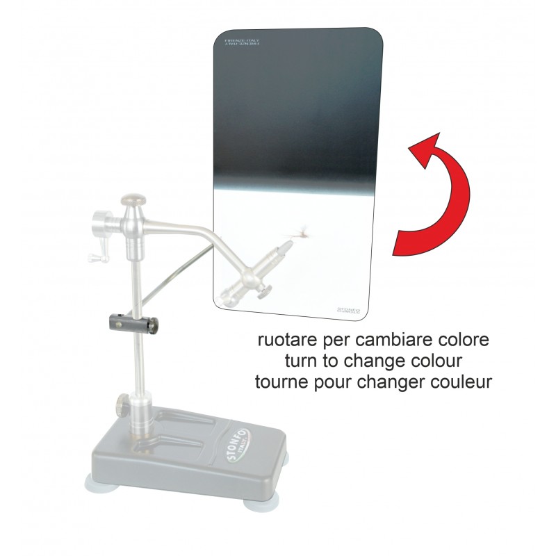 Placa de profil pivotanta pentru menghina. Culoare dublă alb-negru pentru nevoile dvs. de legare. Echipat cu dispozitiv de repaus magnetic care permite rotirea placii pentru o schimbare rapida a culorii. Suprafata nereflexiva. Se potrivește pe menghine cu tijă Ø 8-10 mm.