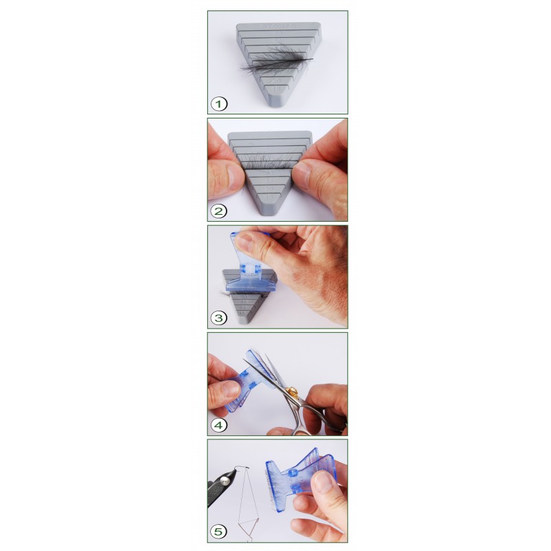 Vă sugerăm să utilizați blocul CDC Feathers în combinație cu agrafele Stonfo pentru a lucra mai ușor pe pene.