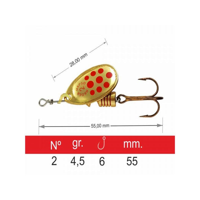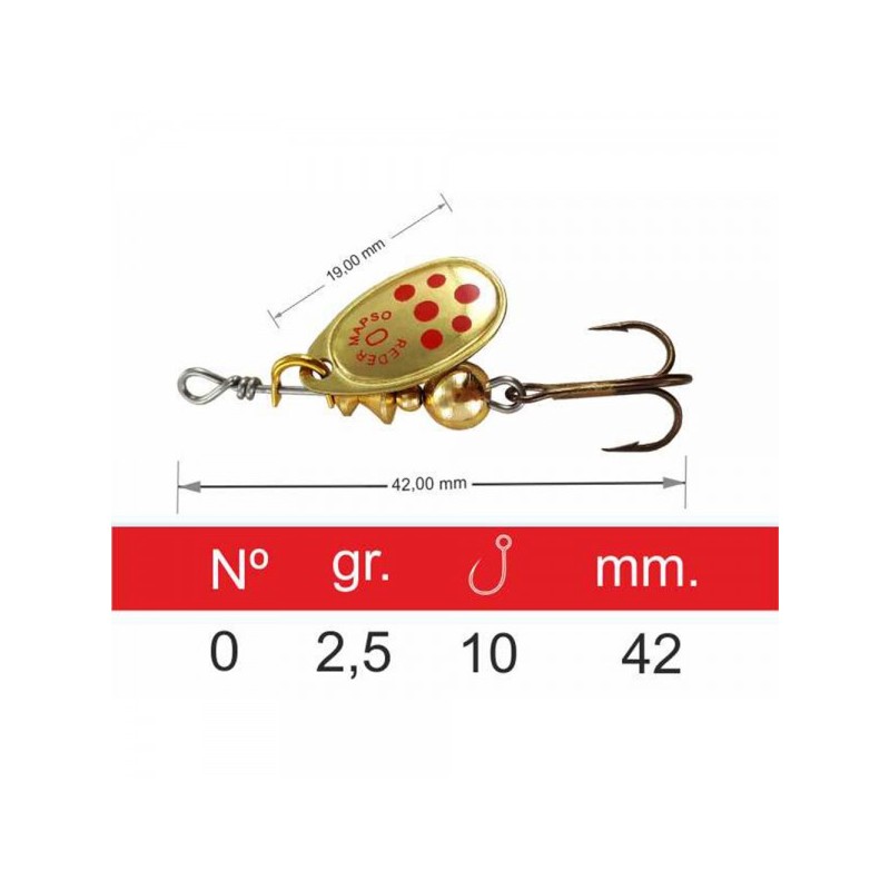 Mapso Reder este una dintre cele mai populare si folosite lingurite printre pescarii experimentati. Dispune de un unghi de rotire de 60º si se adapteaza continuu la rezistenta oferita, mentinand nivelurile vibratiilor. Sunetul transmis atrage pestii de la distante foarte mari. Caracteristica sunetului este de asa natura, incat pestele care sta mai mult prin ascunzatori, va fi de asemenea atras. Designul ofera optiunea de a folosi modelul Reder la diverse adancimi, ceea ce face ca aceasta naluca sa fie ideala pentru capturarea majoritatii speciilor de peste.