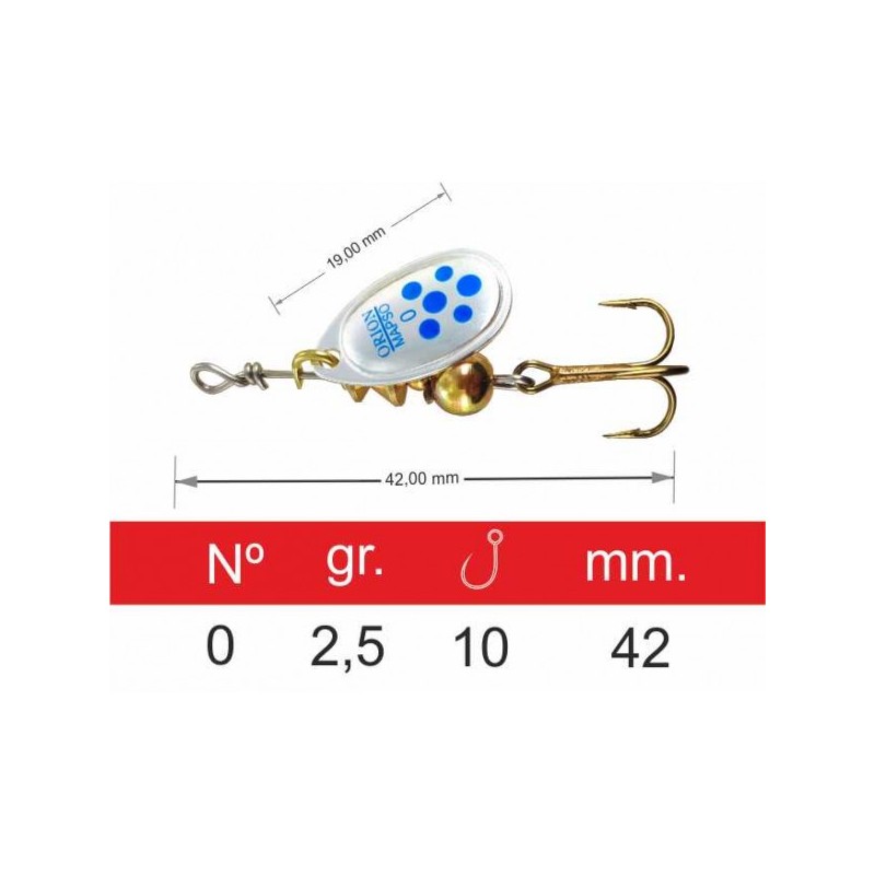 Cu o rotatie a paletei sub un unghi de 45 grade, rotativa Mapso Orion imita perfect insectele cazute pe luciul de apa. Poate fi utilizata atat la pescuitul pe lacuri, cat si pe rauri.