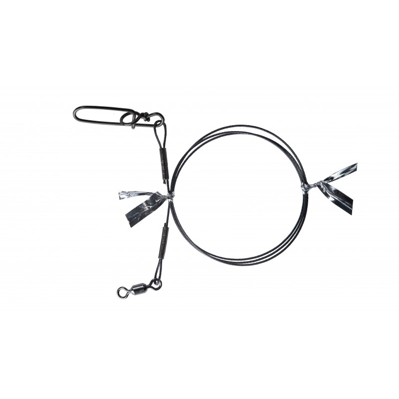 Componentele sunt fabricate din oțel inoxidabil călit, iar conexiunea precisă prin sertizare menține rezistența originală a liderului din oțel. Datorită nichelului negru folosit pentru sertizare, întregul lider de spinning are un aspect discret în prezentarea momelii. Agrafa este deasemenea tratata anticoroziv, iar culoarea neagra aplicata o face una din cele mai eficace agrafe existente pe piata.