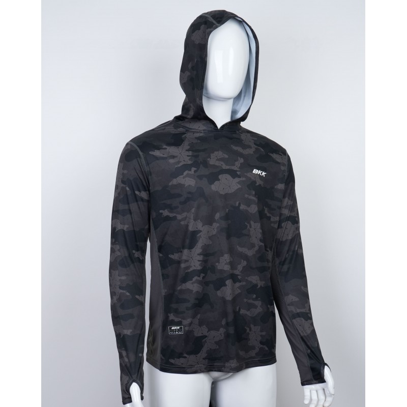 Tricoul performant cu mânecă lungă îmbunătățit BKK vine acum într-o versiune cu glugă suplimentară pentru a vă proteja capul și gâtul de lumina intensă a soarelui. Țesătura asigură protecție UV supremă (UPF 50+) și uscare rapidă pentru confort pe tot parcursul zilei. Orificiile de la baza manecilor, pentru degetul mare, păstrează mânecile intinse si protejeaza mana in zilele toride de vara, iar panourile de plasă de pe ambele părți ale corpului si bratelor oferă o zona laterală excelenta de aerisire pentru a vă menține intr-un confort sporit racoros. Noul model camo oferă o modă elegantă pe apă pentru cel mai multi pescari pasionati, fiind in acelasi timp si un bun camuflaj pentru pescuitul pe rauri, unde pastravii si clenii mari sunt foarte atenti la orice miscare.