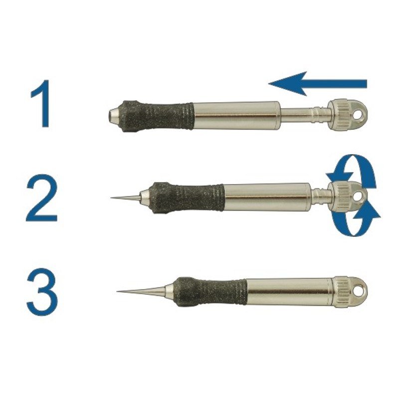 Instrument foarte util pentru a curăţa ochiul cârligului sau pentru a desface nodurile cele mai dificile. Echipat cu varf ascutit dublu conic cu arc retractabil din otel inoxidabil.Maner moale pentru o atingere placuta.