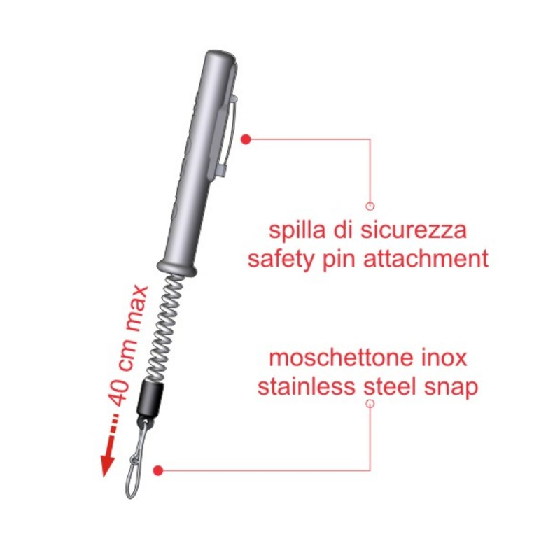 Buton de service cu arc în material plastic durabil şi de mare putere. Uşor şi compact se aplică la vesta prin intermediul unui ac de siguranţă.
